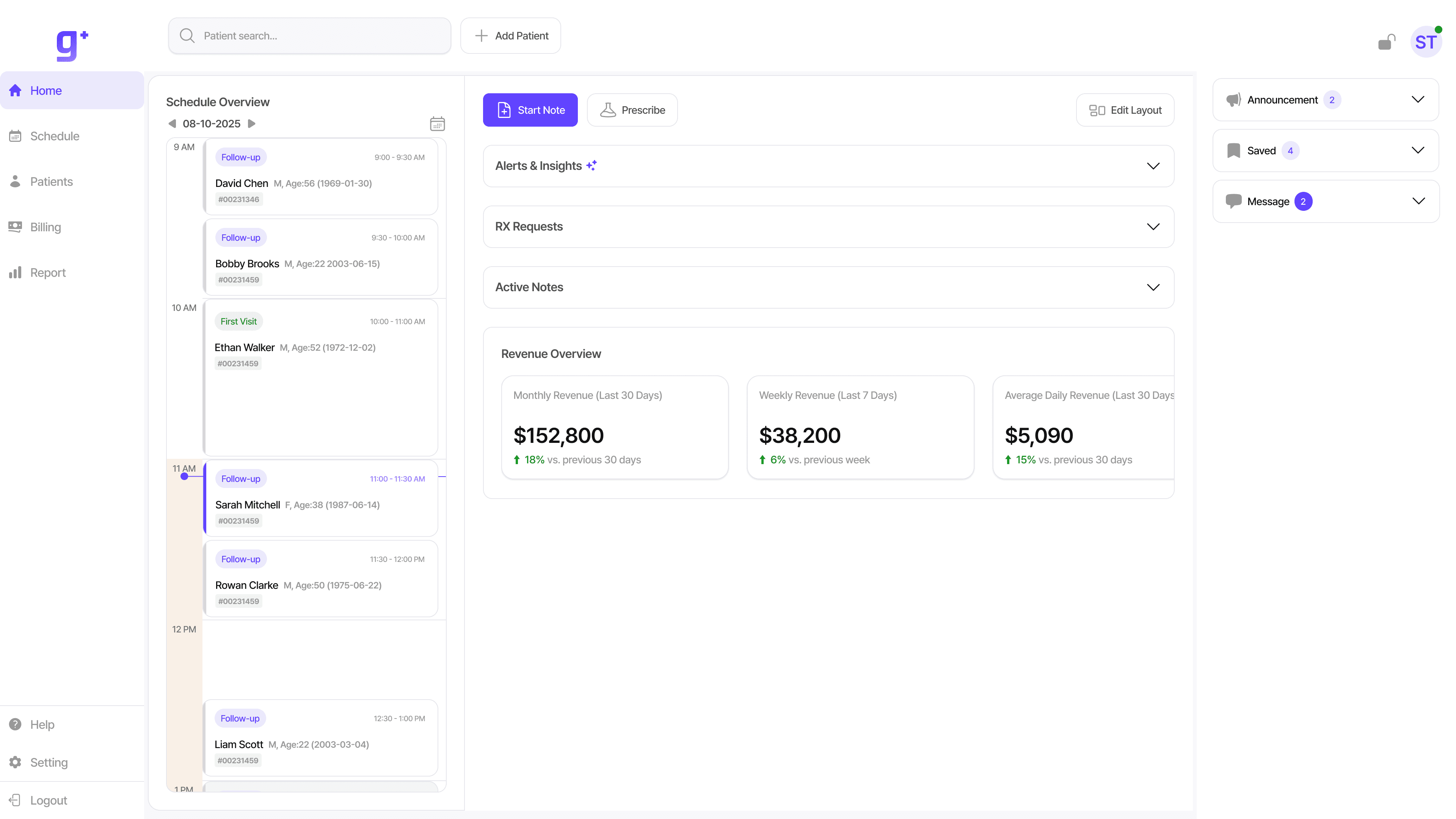 Intuitive entry points allow instant access to the patient dashboard without menu-diving.
