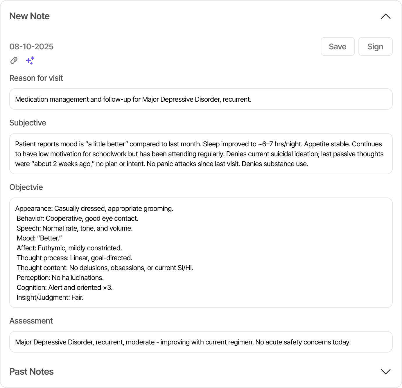 Clinical data is currently fragmented across long narrative notes and scattered tabs. Psychiatrists are forced to function as "data clerks" during appointments, sacrificing face-to-face interaction to hunt for information.